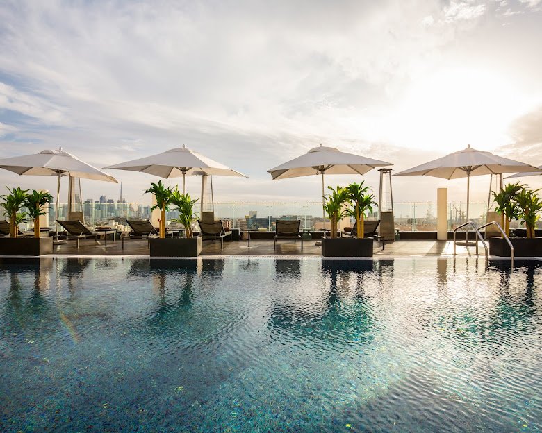 Modern art-inspired hotel in Dubai with designer suites and rooftop lounge